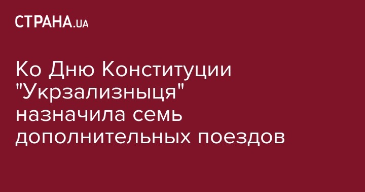 "Укрзализныця" назначила семь дополнительных поездов к выходным дням по случаю празднования Дня Конституции. Об этом сообщается на сайте компании.