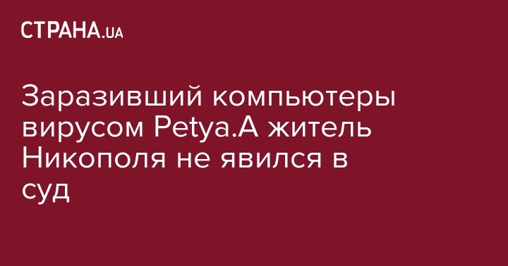В Никопольский горрайонный суд поступил обвинительный акт в отношении жителя Никополя (Днепропетровская обл.), подозреваемого в распространении компьютерного вируса Petya.A. По данным следствия, программой были "инфицированы" около 400 компьютеров.