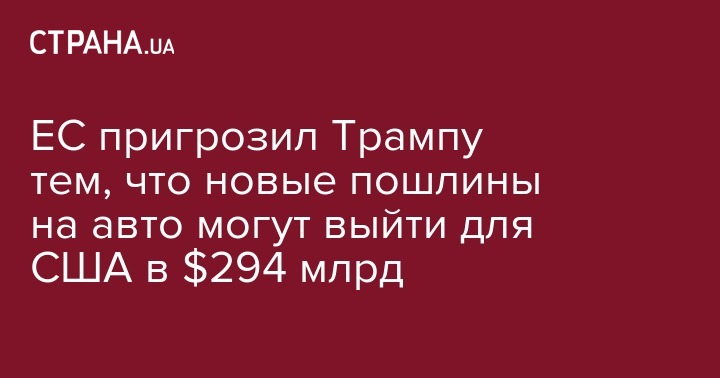 Европейский Союз предупредил Соединенные Штаты, что установление новых тарифов на импорт автомобилей и автозапчастей нанесет вред американской автомобильной промышленности и, вероятно, приведет к экспортным контрмерам на $294 млрд. Об этом сообщает Reuters.