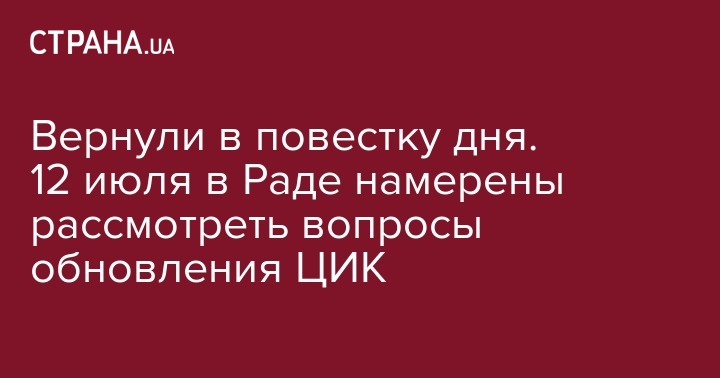 Вернули в повестку дня. 12 июля в Раде намерены рассмотреть вопросы обновления ЦИК