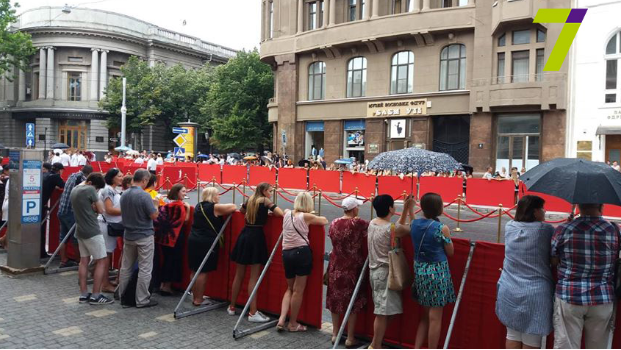 Фото: Сотни горожан и туристов пришли посмотреть на проход по красной дорожке/7kanal.com.ua