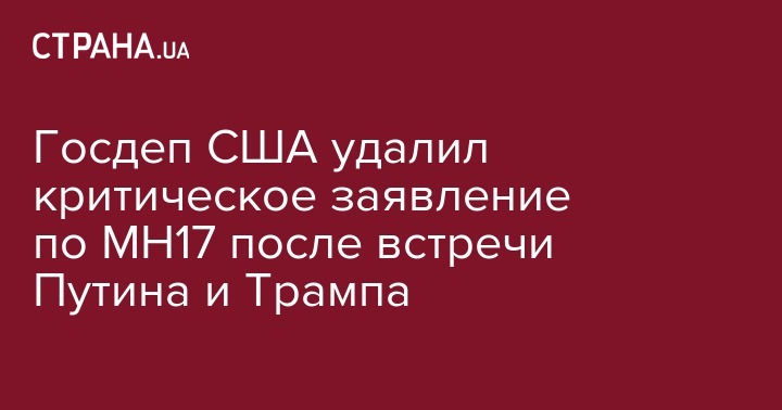 Государственный департамент США подготовил резкое заявление относительно роли России в крушении рейса MH17 на Донбассе, но так и не опубликовал его после встречи Трампа и Путина в Хельсинки.