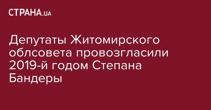 Сессия Житомирского областного совета в четверг, 26 июля, поддержала решение об объявлении 2019 года в области годом лидера Организации украинских националистов (ОУН) Степана Бандеры. Об этом сообщает Интерфакс со ссылкой на пресс-службу Житомирского облсовета.