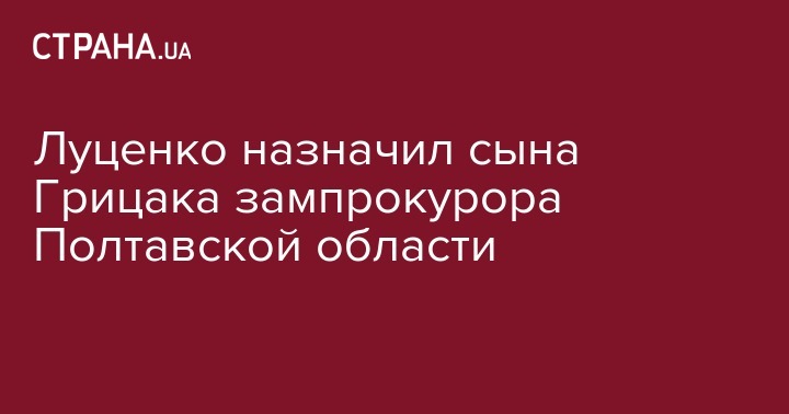Заместителем прокурора Полтавской области назначен Олег Грицак, сын главы Службы безопасности Украины Василия Грицака. Соответствующий документ 16 августа подписал генеральный прокурор Юрий Луценко. Информация о назначении обнародована на сайте областной прокуратуры.