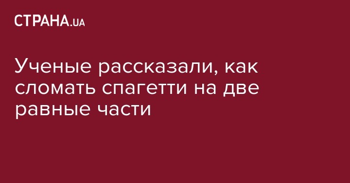 Доказала это группа ученых из США и Франции под руководством Йорна Дункеля из Массачусетского технологического университета. Они засняли процесс разлома спагетти на высокоскоростную камеру со скоростью записи от двух тысяч до одного миллиона кадров в секунду, а также использовали численное моделирование. Выяснилось, что если, сгибая макаронину, скрутить ее вокруг оси более, чем на 250 градусов, и зафиксировать в этом положении, ее внутреннее напряжение изменится. Она начнет раскручиваться быстрее, чем распрямляться, что позволяет поделить ее на две равные части.