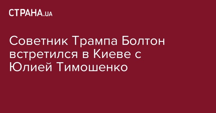 Глава партии "Батькивщина" Юлия Тимошенко провела встречу с советником по вопросам нацбезопасности президента США Дональда Трампа Джоном Болтоном.