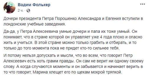 Журналист Вадим Фолькер пишет, что в стране, которой уже четыре года управляет Порошенко, учиться, как оказалось, плохо.