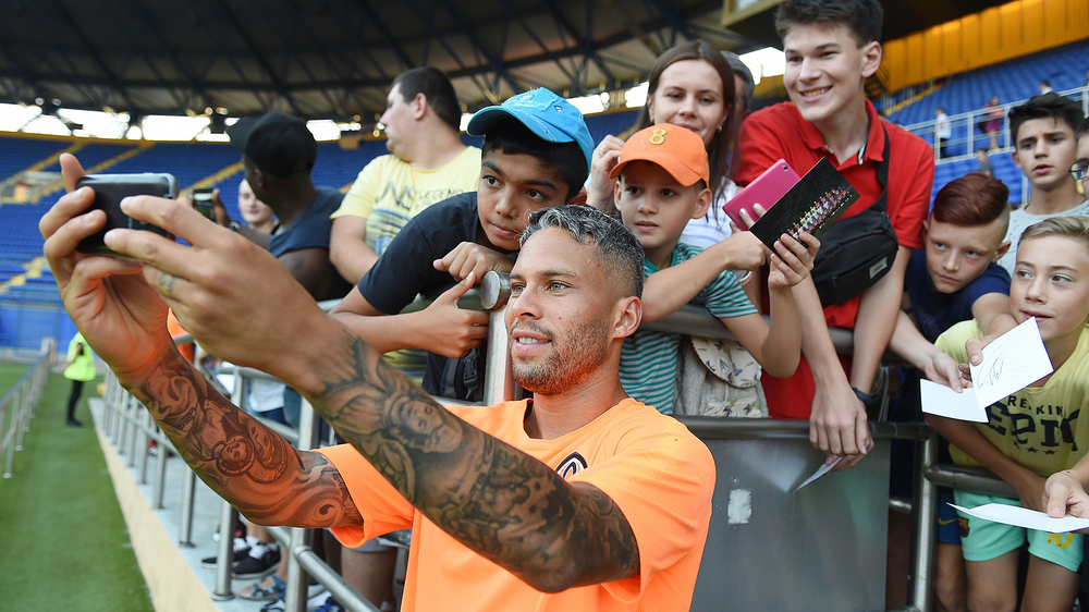 Игроки "Шахтера", вчера 31 августа, накануне игры с "Мариуполем" провели открытую тренировку для болельщиков на ОСК "Металлист". Фото с тренировки опубликовала пресс-служба "горняков".