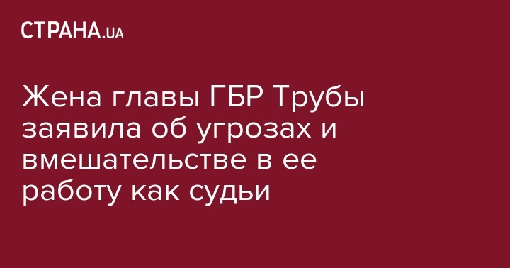 Александра Баева, судья Шевченковского районного суда города Львова, супруга директора Госбюро расследований Романа Трубы, обратилась к Высшему совету правосудия и генпрокурору с сообщением о вмешательстве в ее деятельность как судьи. Об этом сообщает в понедельник пресс-центр судебной власти Украины.