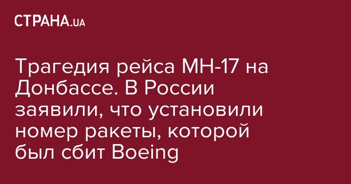 Представители Минобороны России утверждают, что номер ракеты, которой в 2014 году был сбит малайзийский Boeing на Донбассе, говорит о ее создании в 1986 году и отправке в воинскую часть в УССР, после чего в Россию она не возвращалась. Об этом сообщает ТАСС.
