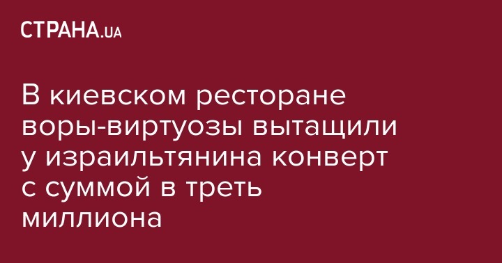 ЧП произошло во второй половине дня в ресторане украинской кухни "PetruSь" на Эспланадной, который любят посещать иностранцы из-за национального колорита. Маркетолог из Израиля по имени Яков, который приехал как турист, зашел в заведение перекусить. Вероятно, во время трапезы он расслабился и тут же стал мишенью опытных карманников. Они настолько грамотно его обокрали, что он не заметил никого рядом. Пропажу из своей сумки конверта с более 9 тысячами евро и 1200 долларов (немногим менее 400 тысяч гривен) США израильтян обнаружил только при расчете по чеку.