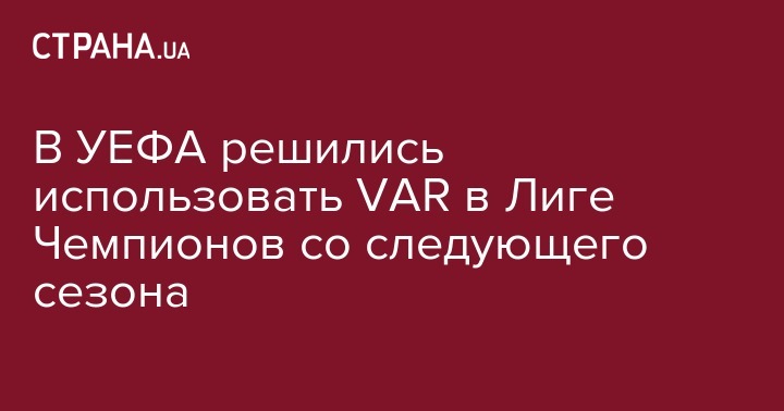 Начиная со следующего сезона (2019-2020) система видеоповторов для арбитра (ВАР/VAR) начнет использоваться в Лиге Чемпионов. Соответствующее решение приняли в УЕФА, о чем сообщает ее пресс-служба.