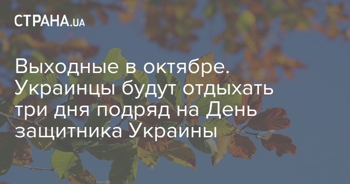 В октябре украинцев ждет приятный сюрприз – выходных будет больше, чем в обычный месяц. Дело в том, что 14 октября отмечается День защитника Украины, который выпадает на воскресенье, поэтому следующий рабочий день. понедельник, решили сделать выходным. Таким образом, украинцы получат длинный уик-енд с 13-е по 15-е число.