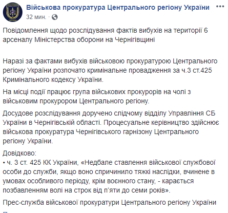 12:54  В Сети пишут, что ровно за день до взрывов в Ичне суд восстановил в должности начальника военных складов в Балаклее, которые взрывались в 2017 году.