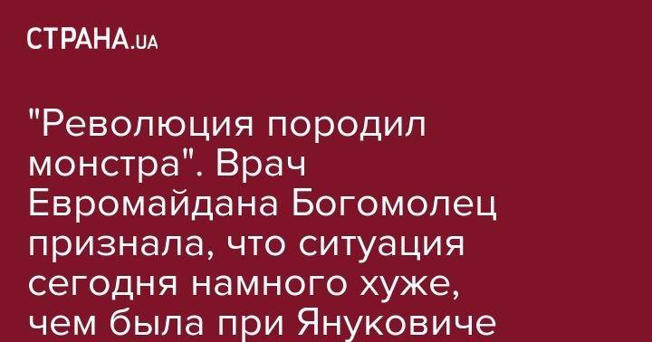 По мнению главы парламентского комитета по вопросам здравоохранения и депутата от БПП Ольги Богомолец, за годы после революции в Украине родилось новое страшное явление. Об этом она написала в своем блоге "Революция породил монстра" на "Украинской правде".