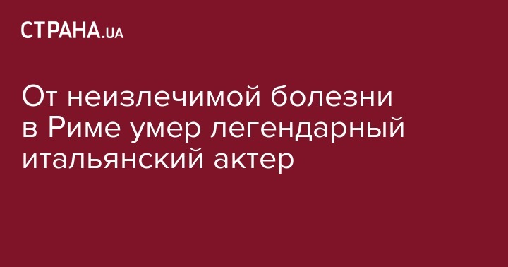В Риме от неизлечимой болезни умер 89-летний итальянский актер Карло Джуффре, на счету которого было более 90 ролей в кино и на телевидении. Об этом сообщает The Hollywood Reporter