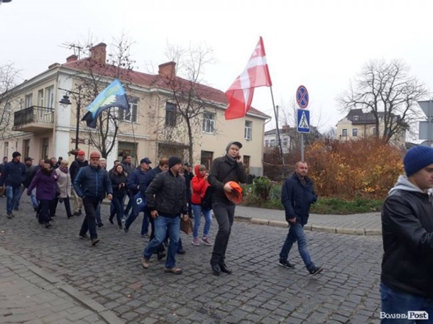 Шахтеры вышли на улицы Луцка с требованием погасить трехмесячные долги по заплате. Фото