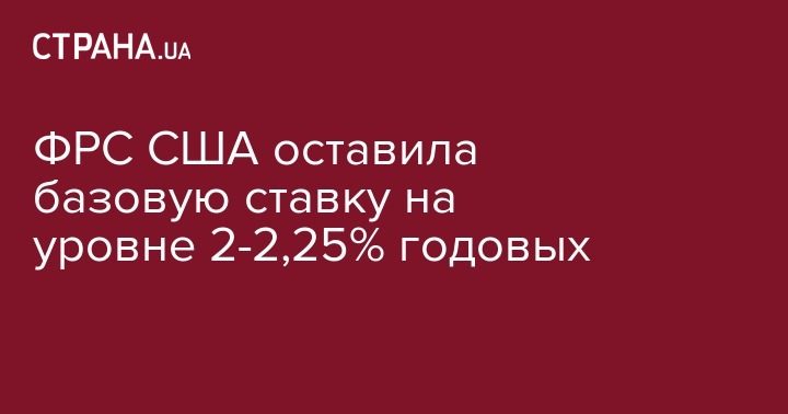 Федеральная резервная система (ФРС) США по итогам двухдневного заседания приняла решение сохранить процентную ставку по федеральным кредитным средствам на уровне 2-2,25% годовых. Об этом говорится в коммюнике Федерального комитета по открытым рынкам (FOMC), пишет Интерфакс.