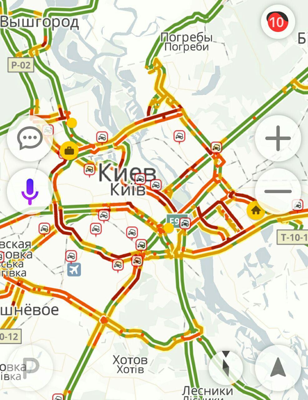 Утром в городе 10-балльные пробки. Особо сложная ситуация по состоянию на 10:30 в районе Майдана, Крещатика, Контрактовой площади, тянучки на Подоле, бульваре Дружбы народов, бульваре Леси Украинки, в районе цирка на проспекте Победы, Дарницком мосту и мосту Патона.