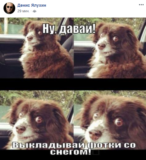 "Ну, давай! Выкладывай фотки со снегом!"