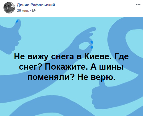 "Не вижу снега в Киеве. Покажите. Где снег? А шины поменяли? Не верю"