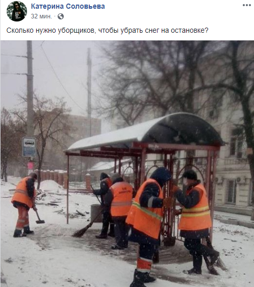 "Сколько нужно уборщиков, чтобы убрать снег на остановке?"