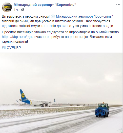 Аэропорт "Борисполь" сообщил, что работает в штатном режиме.