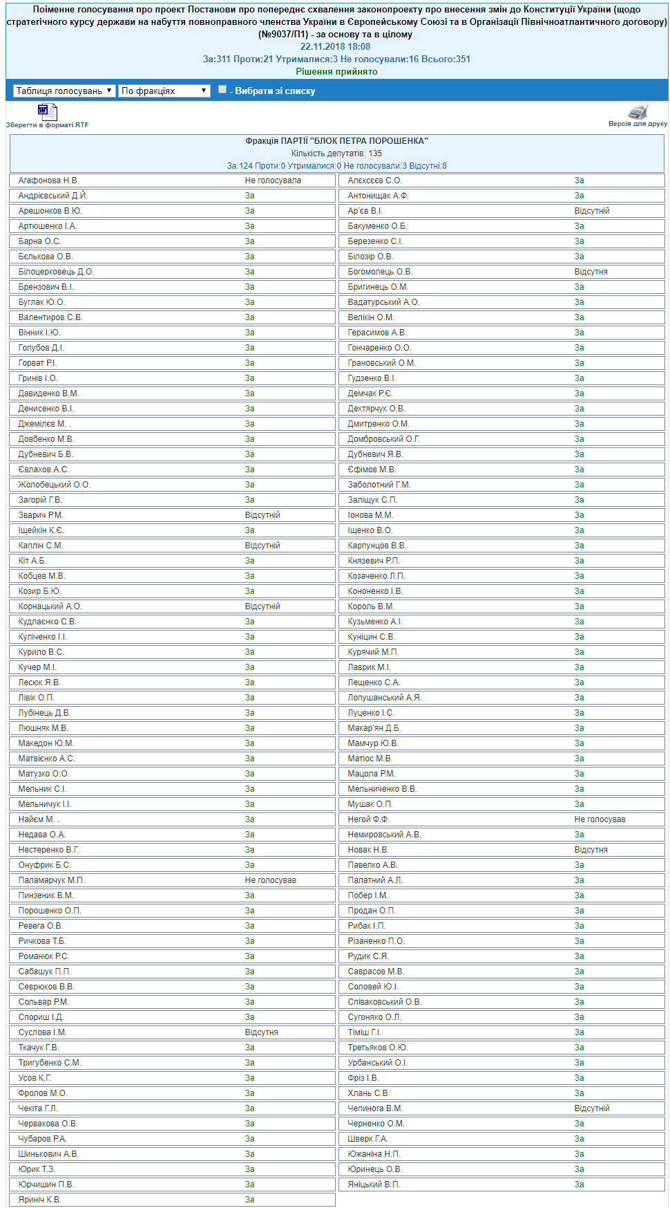 Кто проголосовал за курс в НАТО в Конституции. Полный список депутатов