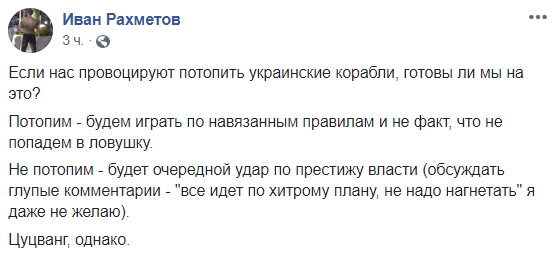 "Если нас провоцируют потопить украинские корабли, готовы ли мы на это?