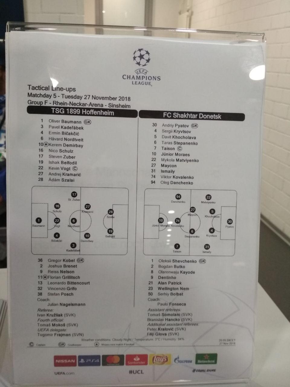 Во вторник, 27 ноября, в 5-м туре Лиги Чемпионов Шахтер на выезде обыграл немецкий Хоффенхайм. Победу нашей команде принес гол Тайсона в компенсированное судьей время. "Горняки" набирают 5 очков и продолжают борьбу за выход в 1\8 Лиги Чемпионов.