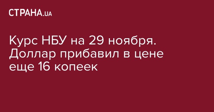 Курс НБУ на 29 ноября. Доллар прибавил в цене еще 16 копеек