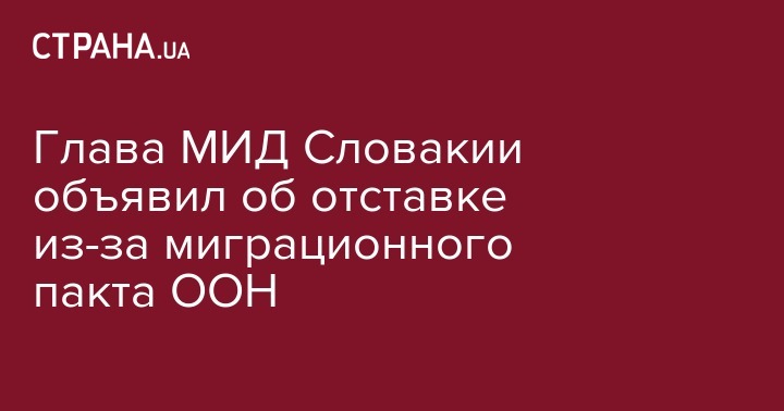 Министр иностранных дел Словакии Мирослав Лайчак заявил о своей отставке, объяснив свое решение нежеланием парламента страны присоединиться к миграционному пакту ООН, сообщает "Радио Свобода".