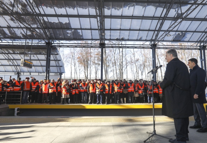 Участие в запуске поезда приняли президент Петр Порошенко, премьер Владимир Гройсман, министр инфраструктуры Владимир Омелян, и. о. главы правления "Укрзализныци" Евгений Кравцов. Все они проехались по маршруту от вокзала до станции "Борисполь - аэропорт".