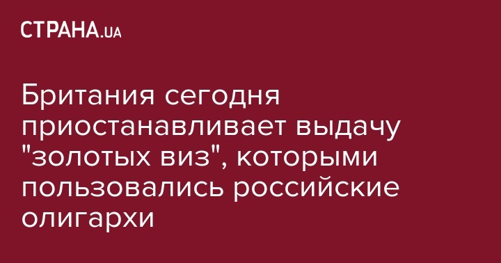 Британия сегодня приостанавливает выдачу "золотых виз", которыми пользовались российские олигархи