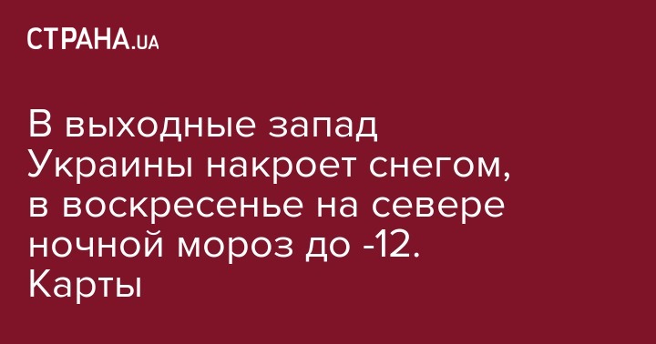 В выходные запад Украины накроет снегом, в воскресенье на севере ночной мороз до -12. Карты