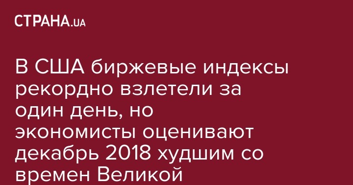 В США биржевые индексы рекордно взлетели за один день, но экономисты оценивают декабрь 2018 худшим со времен Великой депрессии