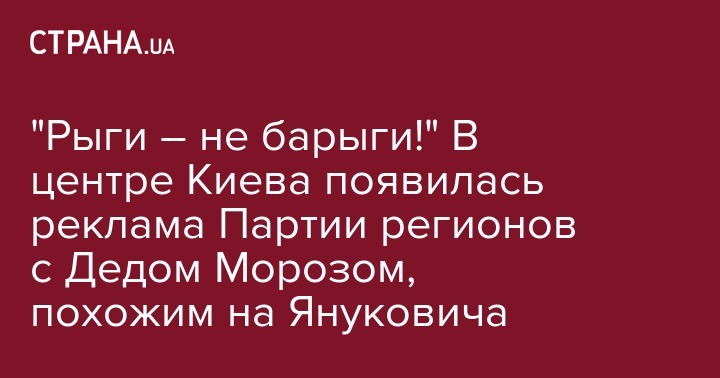 Так, над переходом на Майдане Незалежности в Киеве (он же вход в одноименное метро) висит "наружка" от Партии регионов на украинском языке с изображением экс-президента Виктора Януковича в костюме Деда Мороза и надписью: "Рыги (стебное название Партии регионов. – Прим. ред.) – не барыги. Услышу каждого".