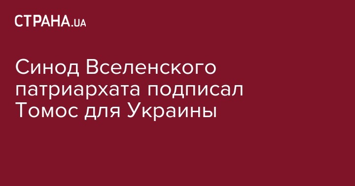 Синод Вселенского патриархата подписал Томос для Украины