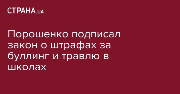 Президент Украины Петр Порошенко подписал законопроект о введении административной ответственности за буллинг (травля, агрессивное преследование) во время учебного процесса. Об этом сообщается на сайте Верховной Рады.