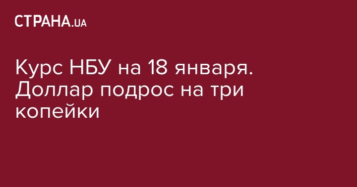 На 18 января 2019 года Нацбанк установил официальный курс доллара к гривне на уровне 28,03 грн/доллар, что на 3 копейки выше по сравнению с предыдущим банковским днем. Об этом свидетельствуют данные на сайте регулятора.
