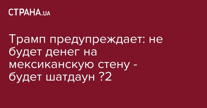Президент США Дональд Трамп, подписавший временный закон о выделении средств для восстановления до 15 февраля работы правительства, предупредил о том, что второй этап шатдауна начнется в том случае, если Конгресс не выделит необходимых средств на строительство стены на границе с Мексикой.
