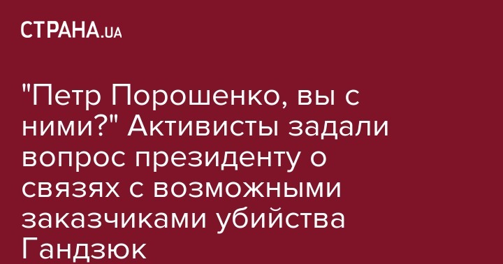 После заявления отца убитой советницы мэра Херсона Виктора Гандзюка о том, что организатор убийства его дочери Екатерины Гандзюк сотрудничал с партийцем "Батькивщины" Владиславом Мангер и партийцем Блока Петра Порошенко Андреем Гордеевым, активисты требуют у Петра Порошенко ответить на вопрос, заодно ли он с ними. Об этом сказано в сообщении на странице "Кто заказал Катю Гандзюк?" в Facebook.