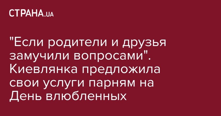 Жительница Киева Виктория Бубнюк предложила свои услуги парням в качестве "девушки на 14 февраля" в преддверии Дня влюбленных. Своим предложением молодая уроженка города Маневичи Ровенской области поделилась в социальной сети Facebook 6 февраля.