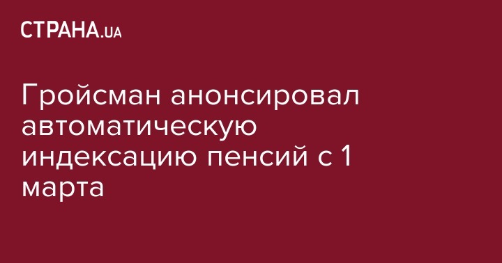 В Украине с 1 марта впервые стартует автоматическая индексация пенсий для всех украинцев. Об этом в ходе заседания Кабинета министров заявил премьер-министр Владимир Гройсман, сообщает его официальный Twitter-аккаунт.