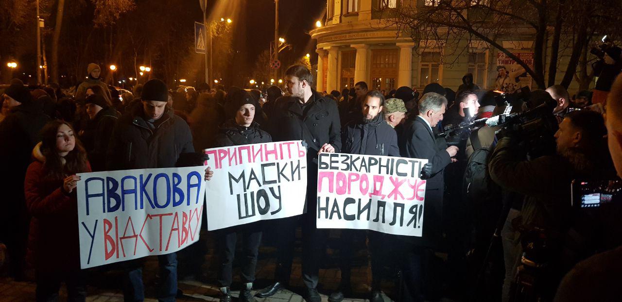 18:37  Несколько раз крикнули "Слава Украине - слава нации - смерть врагам" и начали скандировать "Авакова в отставку".