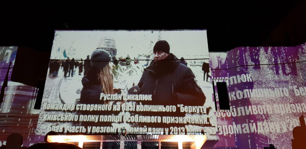 19:22  Участникам акции показали небольшой видеоролик того, как во времена майдана правоохранители применяли силу в отношении митингующих, а также видео со снайперами.