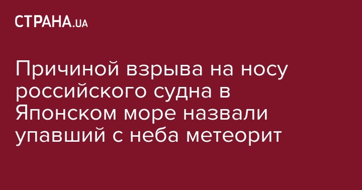 В российской судовладельческой компании "Гудзон" назвали возможные причины инцидента в Японском море, в результате которого судно "Партизан" получило несколько серьезных повреждений. В компании считают, что в судно мог попасть упавший снеба метеорит, пишет "Московский комсомолец".