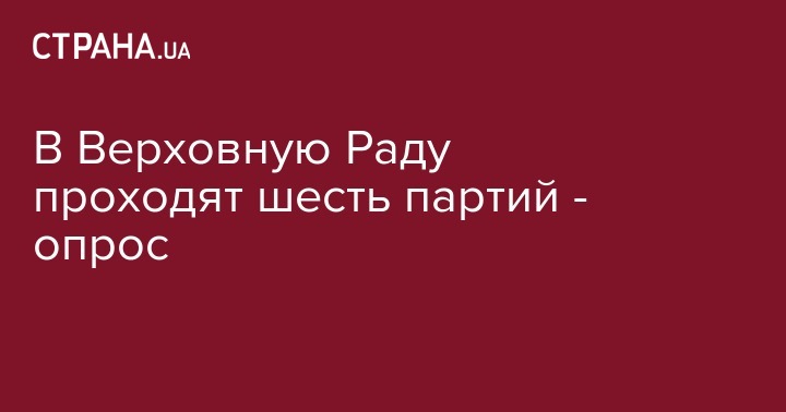 Итого в Верховную Раду проходят шесть партий, указанных выше. Это следует из опроса соцгруппы "Рейтинг", который был проведен 19-28 февраля.