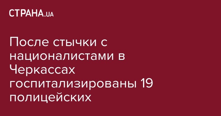 В воскресенье, 10 марта, по состоянию на 09:00 в результате столкновений с членами Нацкорпуса в Черкассах в больницу обратились 22 работника полиции. Из них 19 - госпитализированы. Об этом сообщает отдел коммуникации полиции Черкасской области.