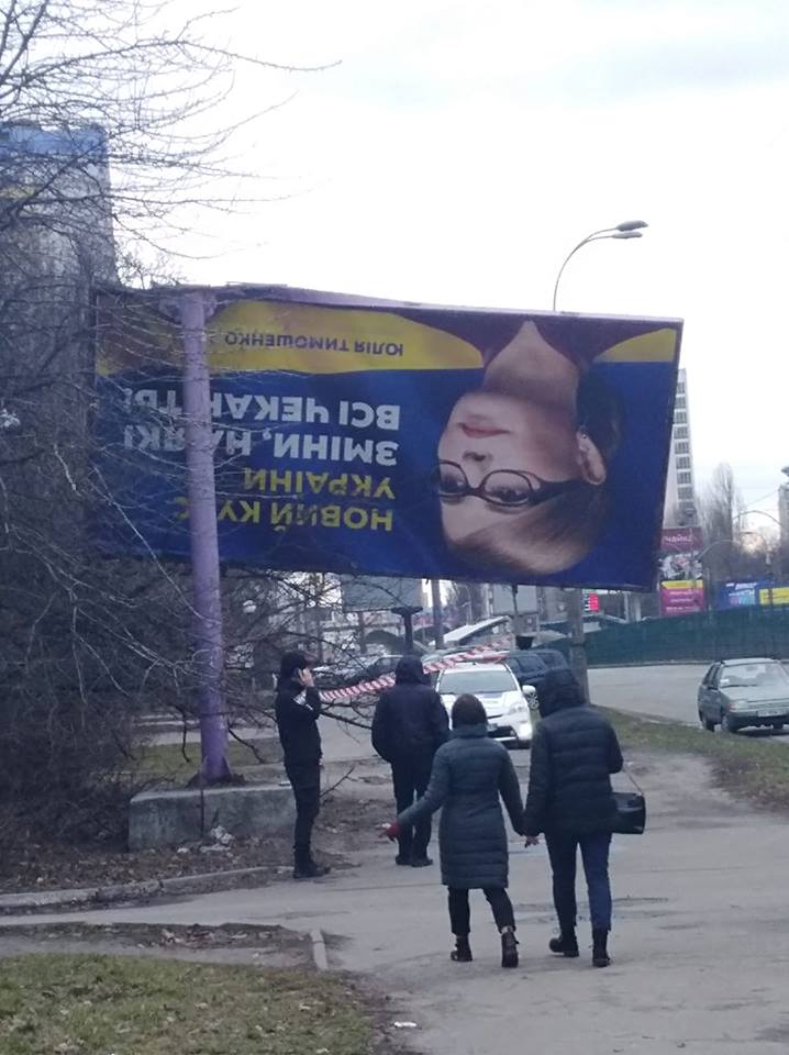 На Отрадном порывы ветра снесли билборд с политической рекламой Юлии Тимошенко.